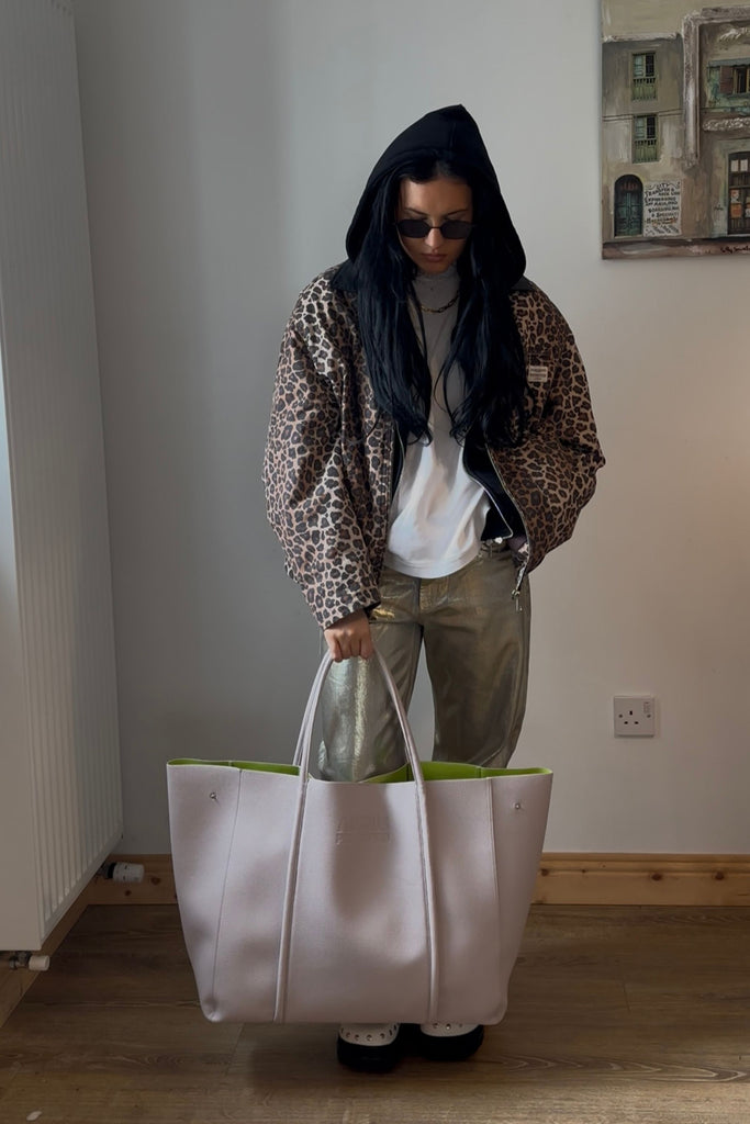 The Oversized Beige w/ Lime Green - Natural with a green lining is backordered and will ship as soon as it is back in stock.