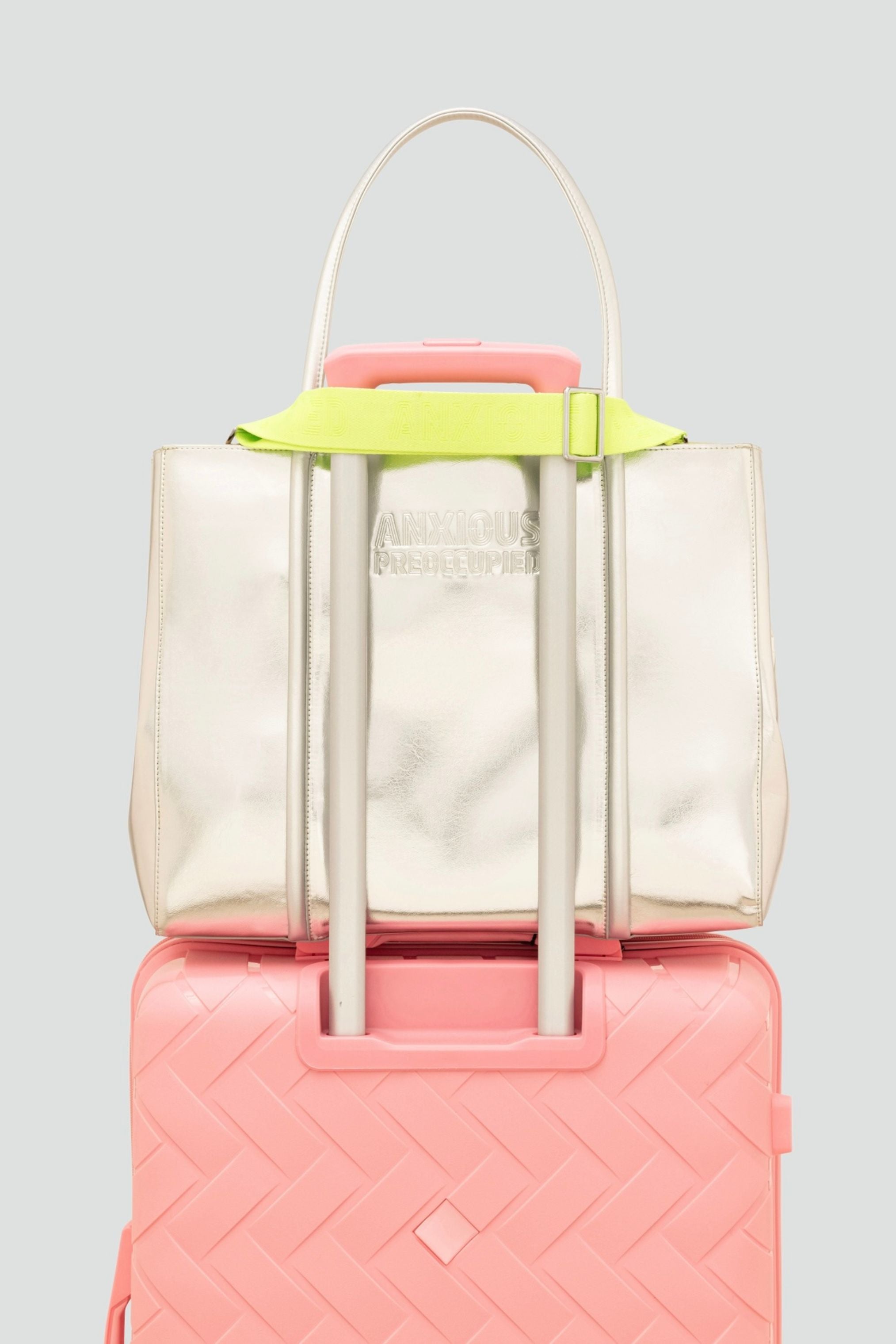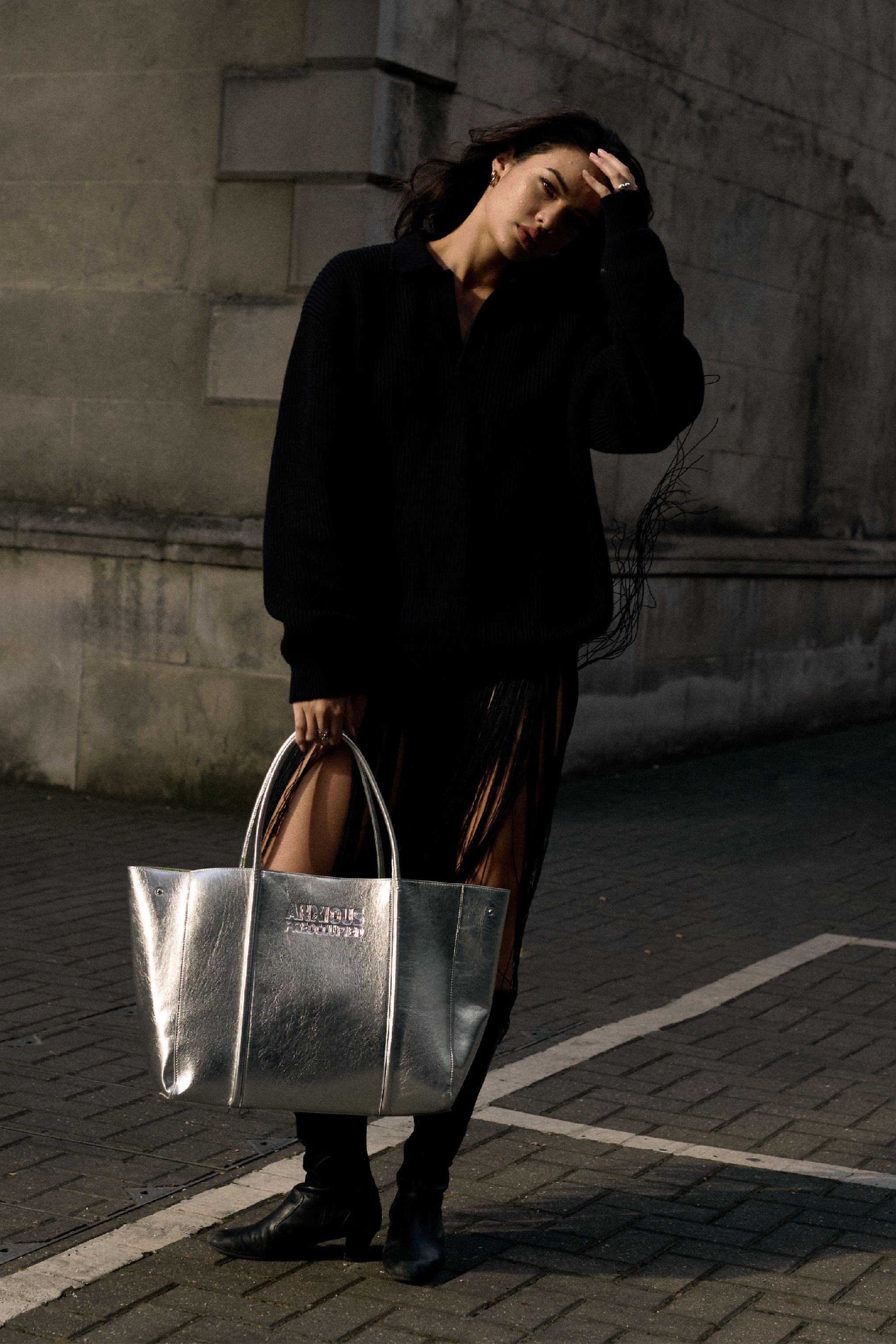 Meet our mid sized metallic handbag. The middle child of the Anxious Preoccupied family, shines like she knows something, and she probably does. The perfect every day for your laptop, your lists and a backup plan.