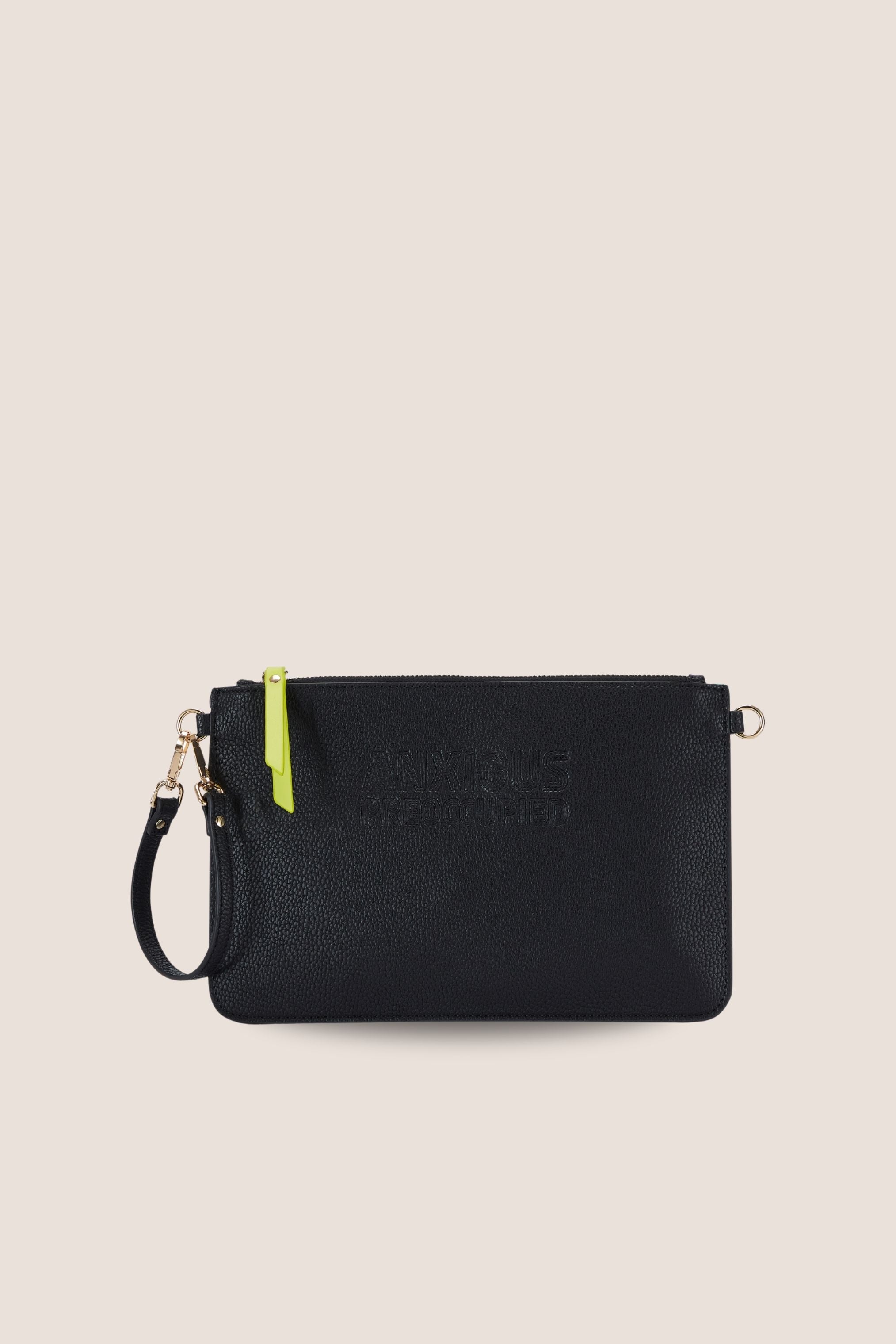 The Clutch Black & Lime Green w/ Cross Body Strap