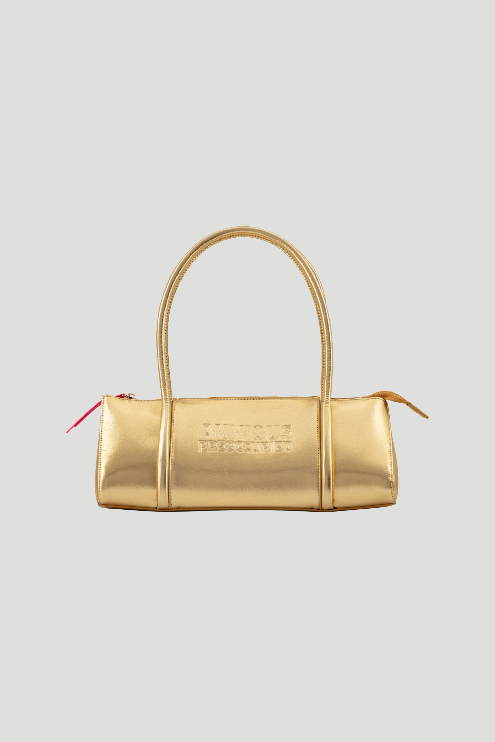 Meet our barrel handbag, lovingly handmade from metallic vegan leather, she’s small enough to dance with and big enough to make an entrance with.