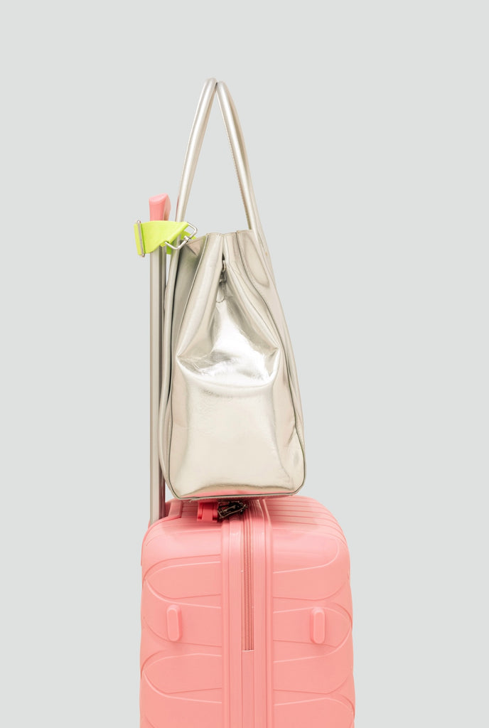 Meet our mid sized metallic handbag. The middle child of the Anxious Preoccupied family, shines like she knows something, and she probably does. The perfect every day for your laptop, your lists and a backup plan.
