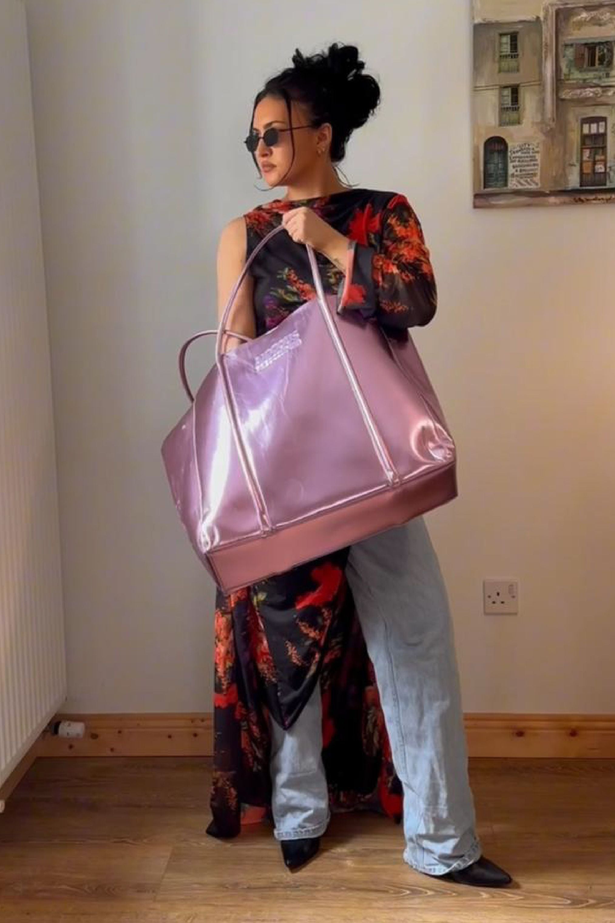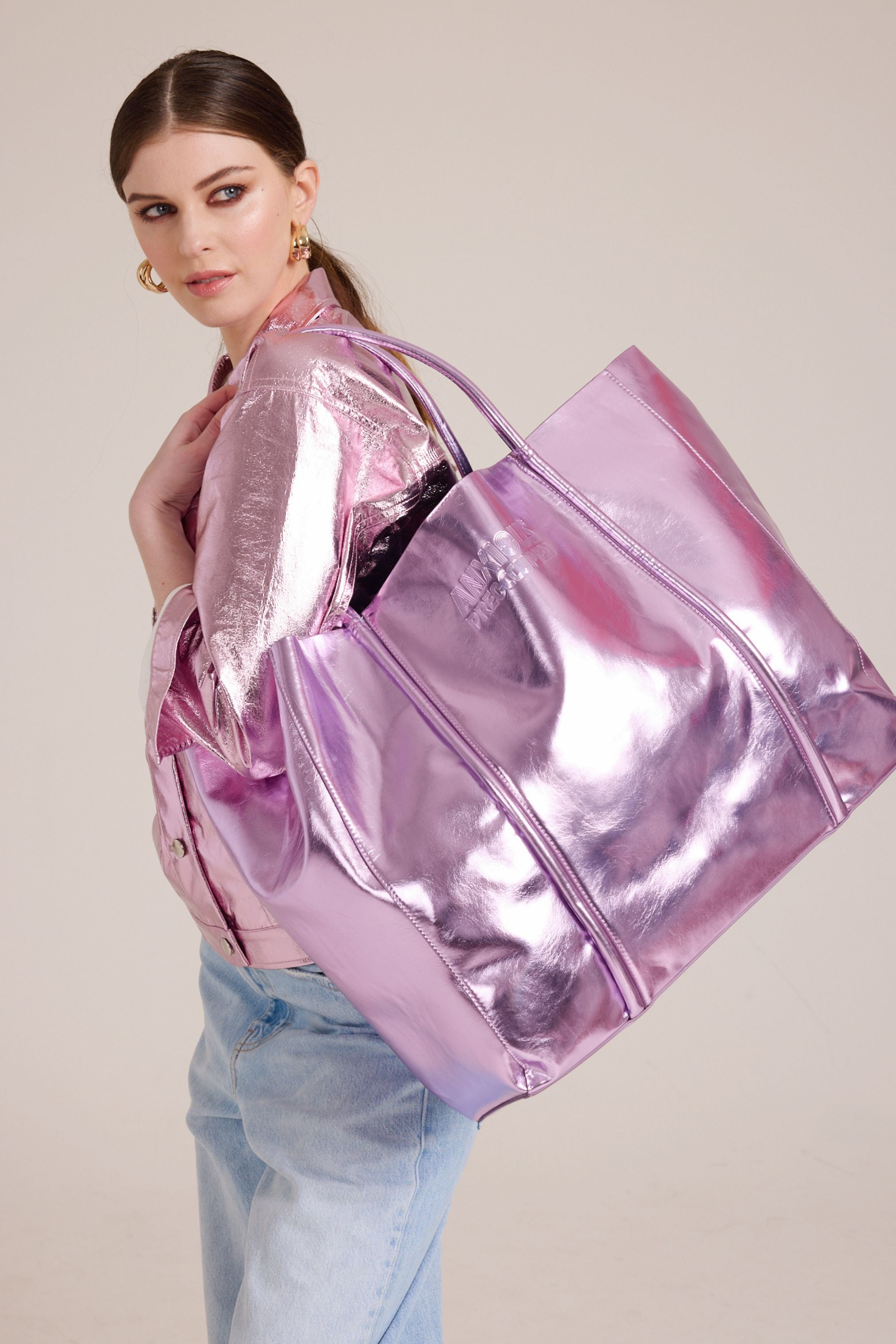 There’s a reason we can barely keep these bad boys in stock. Now you can overthink and overpack in style with one of our oversized vegan leather metallic handbags. She screams main character with room inside for whatever support you need.