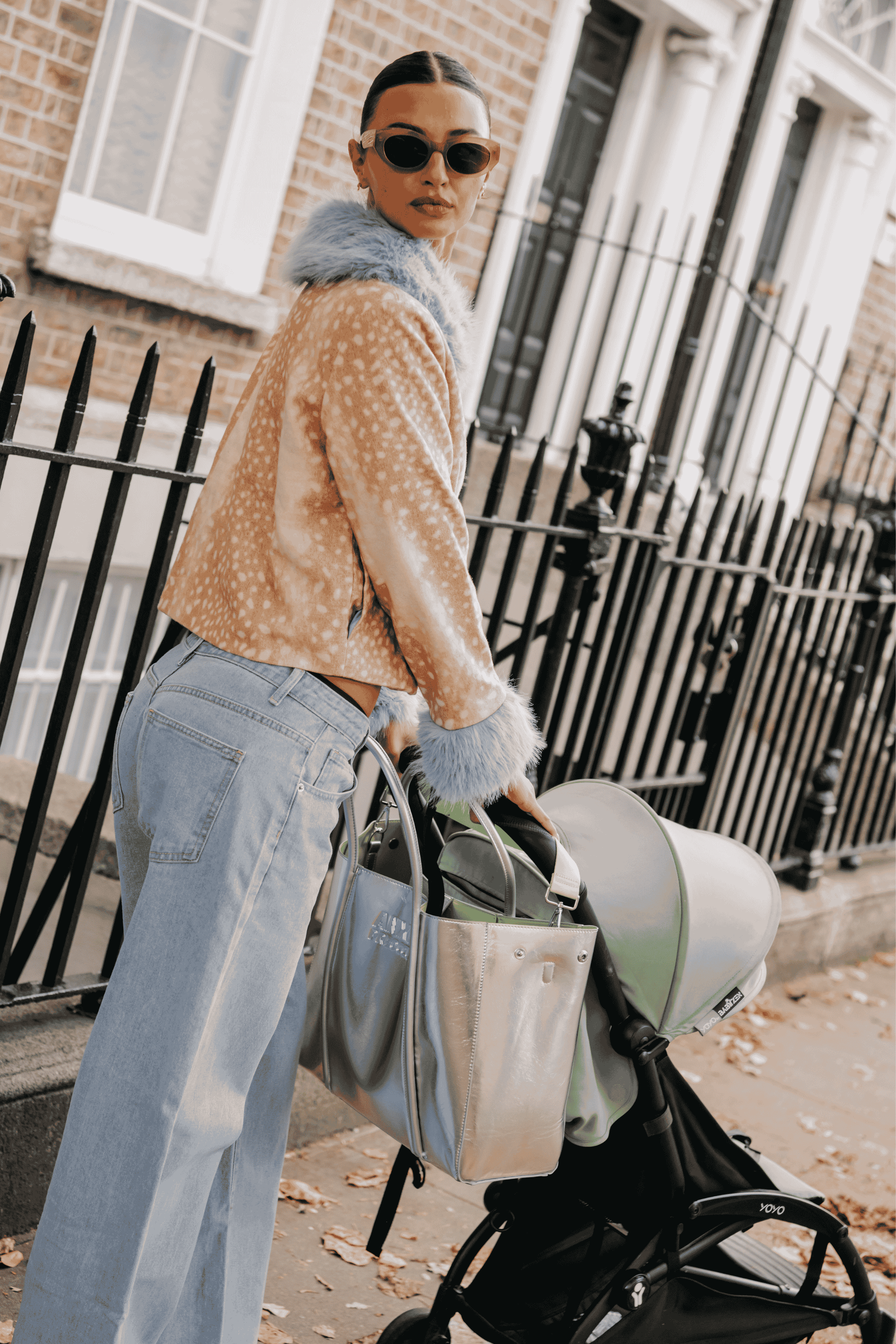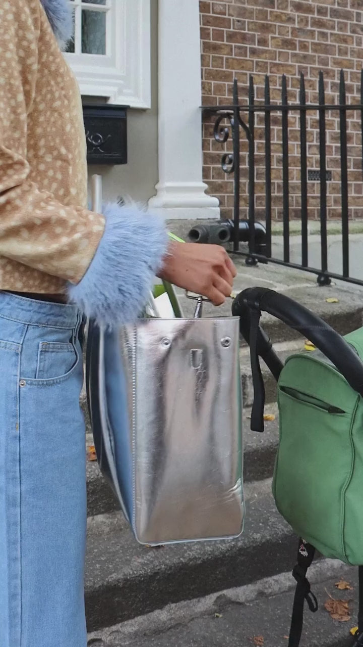 • Silver metallic vegan leather outside